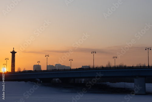 Sunset over Maral bridge. Nur-sultan, Kazakhstan.