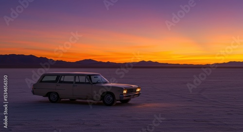 Sunset road trip adventure bonneville salt flats scenic landscape wide angle exploration vibes