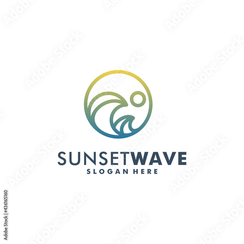 Sunset wave logo design template vector