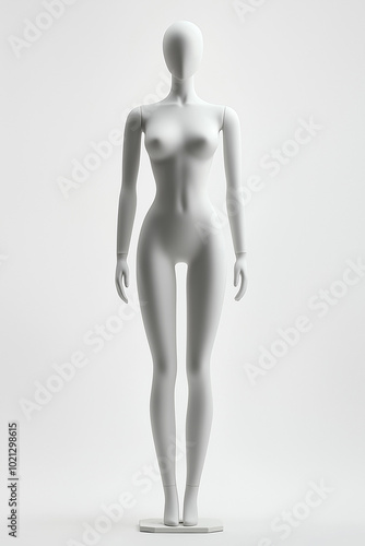 Super slim xs size female mannequin with thin body figure on light studio background. Fashion figure template. Dummy, modern fashion and style. Naked woman mannequin, fashion show