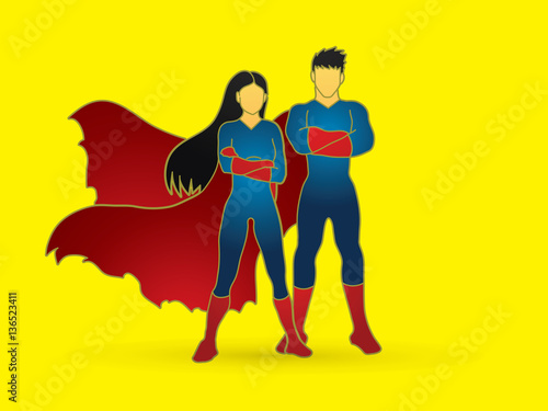 Superhero Man and Woman standing arms across the chest graphic vector.
