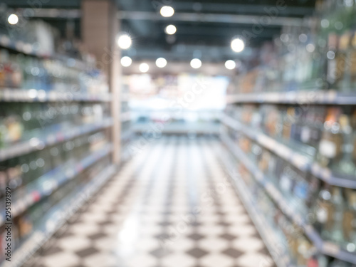 Supermarket store blured background with bokeh. Defocused image
