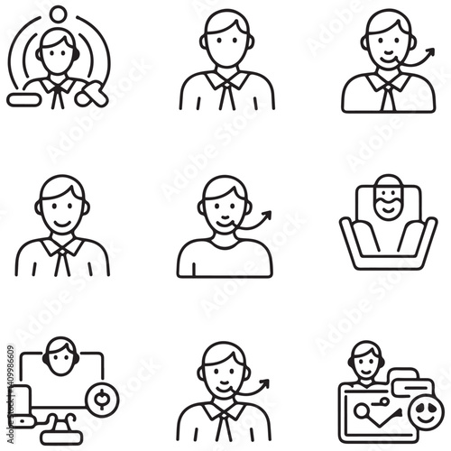 Support, customer service thin line icons set. Service, help, online support, assistance editable stroke icon. Vector with white background