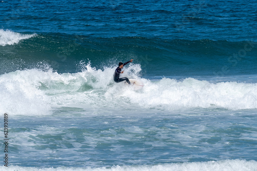 Surfer riding waves in Furadouro Beach