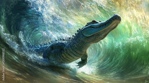 Surfing Crocodile in Aqua Wave