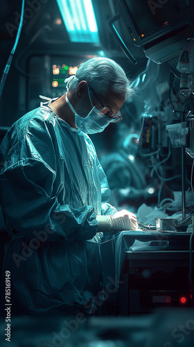 Surgeon operating in a futuristic surgery room
