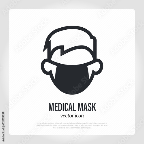 Surgical mask thin line icon. Protective medical equipment. Vector illustration.