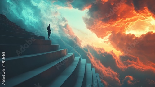 Surreal Landscape with Dramatic Clouds and a Silhouetted Figure