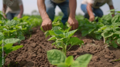 Sustainable Gardening Amid Polluted Soil Challenges Homegrown Food Safety and Environmental Awareness Hands tending to plants in a garden with deep depth of field