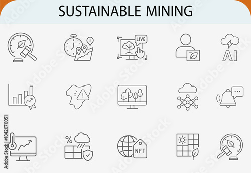 Sustainable mining icons set NFT carbon footprint technology