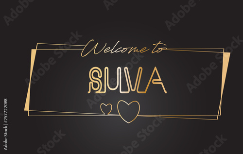 Suva Welcome to Golden text Neon Lettering Typography Vector Illustration.
