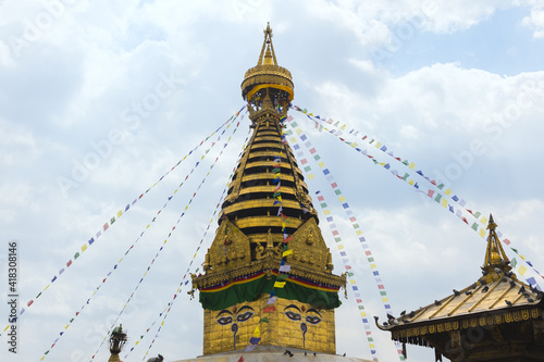 Swayambunath or Monkey Temple, Central Stupa and Buddha eyes, Unesco World Heritage Site, Kathmandu, Nepal, Asia