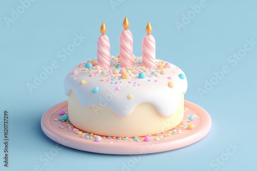 Sweet Celebrations: A single-layer cake, adorned with three lit candles, rests on a plate against a light blue backdrop, creating a sense of anticipation and festivity.