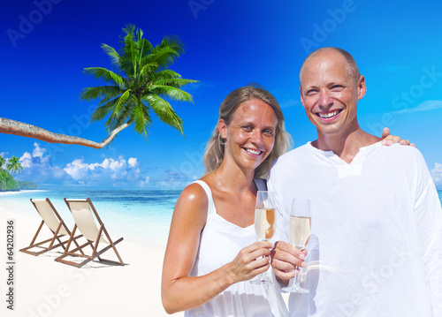 Sweet Couple Celebrating on the Beach