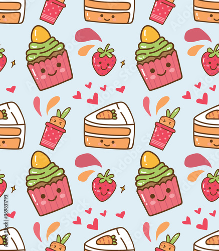 sweet cupcake and sliced cake seamless pattern vector illustration