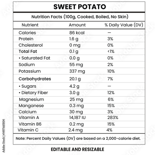 sweet potato nutrition facts, sweet potato nutrition calculator, supplement info template, food label, resizable calorie chart