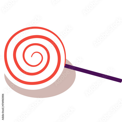 Swirl Lollipop Candy With Red Orange Spiral Pattern On A Purple Stick And Subtle Shadow On Transparent Background