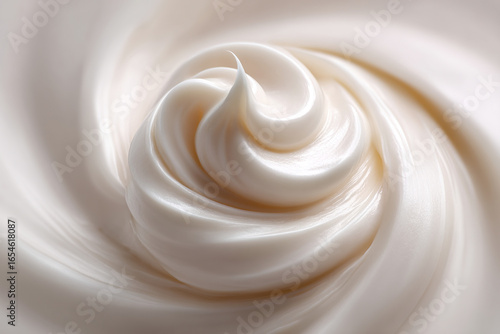 Swirl of creamy, light beige substance with a glossy texture. Rich, smooth and looks like a frosting or skincare product.