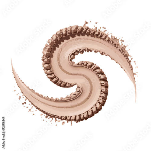 Swirling beige powder splash with textured edges on white background makeup powder cosmetic powder