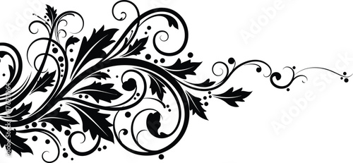 Swirling Vine and Leaf Pattern, Black and White