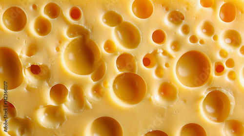 Swiss cheese macro showing holes and texture, yellow food close-up