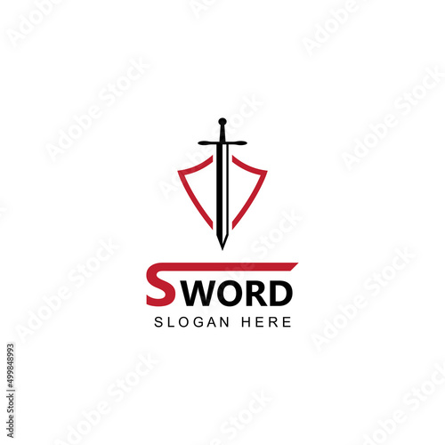 Sword, shield and king's sword logo. Logo design vector illustration template.