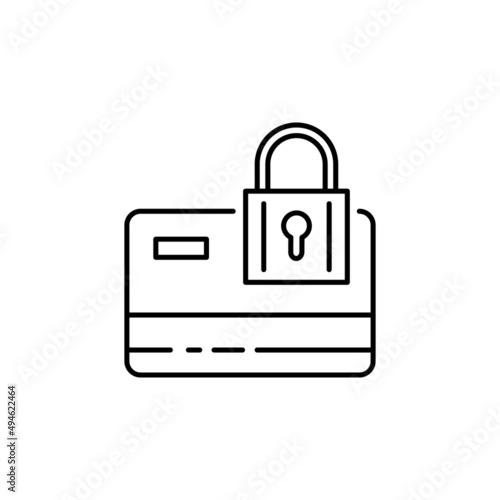 Symbol of Secure Payment Thin line Icon of Cyber Security. Stroke Pictogram Graphic for Web Design. Outline Vector. Premium Mono Linear Beautiful Plain Laconic Logo. Credit card and lock finance