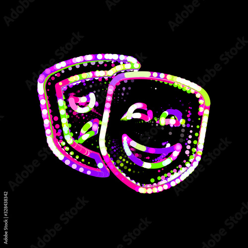 Symbol theater masks from multi-colored circles and stripes. UFO Green, Purple, Pink