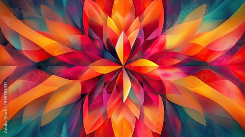 Symmetrical abstract pattern with vibrant kaleidoscopic effect, colorful shapes radiating outward.