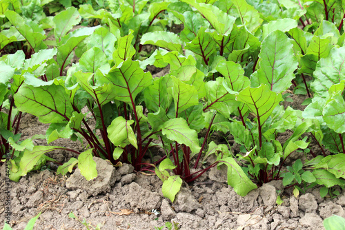 Table red beets grow in open organic soil