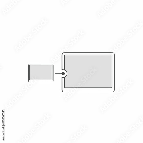 Tablet and smartphone icon for communication technology concept. Modern tablet and smartphone device illustration featuring blank screens on white background.