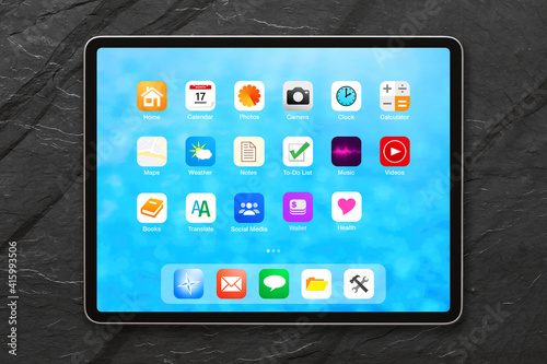 Tablet's home screen mockup with app icons