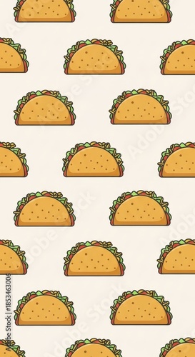 Taco pattern illustration for culinary designs, vibrant and appetizing, seamless food-themed