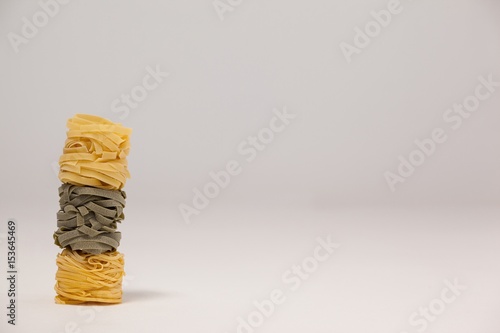 Tagliatelle pasta on white background