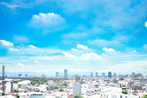 TAINAN TAIWAN - JULY 5, 2017:A beautiful view of Tainan City, Taiwan.Overlooking from Anping District to east. The central mountains in Taiwan can be seen through clear sky.