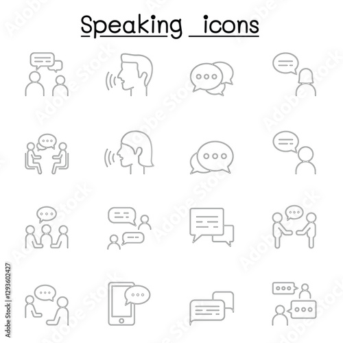 Talk, speech, discussion, dialog, speaking, chat, conference, meeting icon set in thin line style