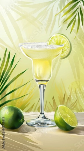 Tall glass of freshly squeezed limeade with a lime wedge garnish. Tart and tangy citrus drink concept