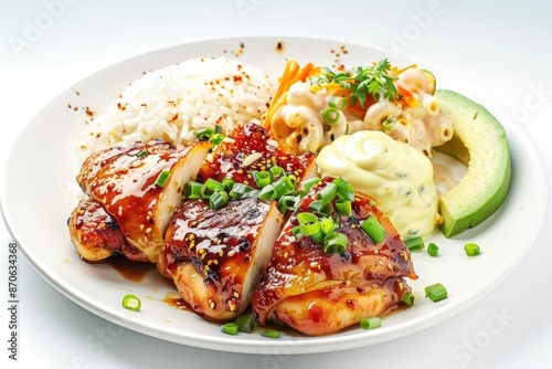 Tantalizing Garlic Furikake Chicken with Creamy Garlic Aioli and Sliced Avocado