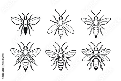 Tarantula Hawk (Pepsis) insect design, labeled line art vector illustration.