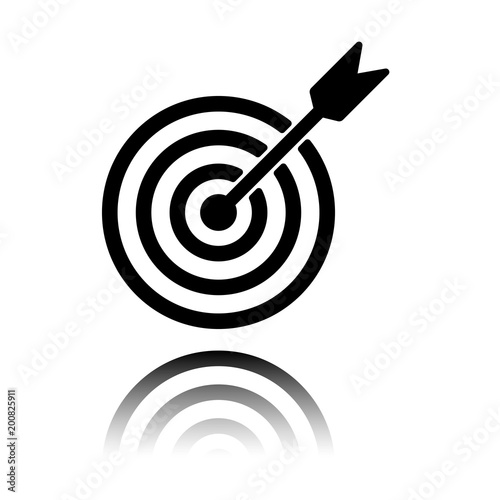 target icon. Black icon with mirror reflection on white background