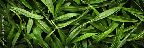 Tarragon texture background, estragon leaf banner, Artemisia dracunculus pattern, fresh herbal leaves