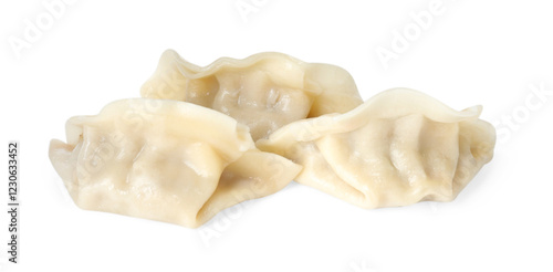 Tasty boiled gyoza (dumplings) isolated on white