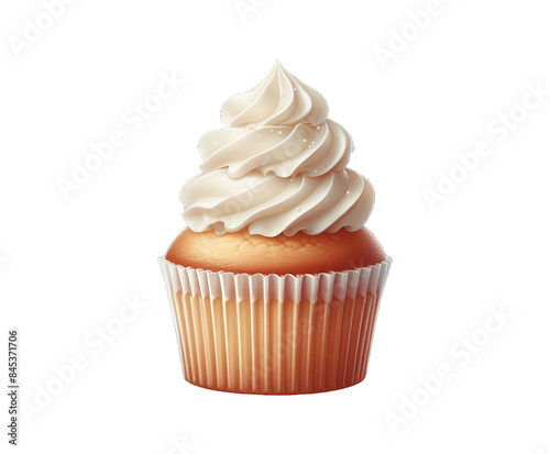 Tasty chocolate cupcake with whipped cream isolated on transparent background