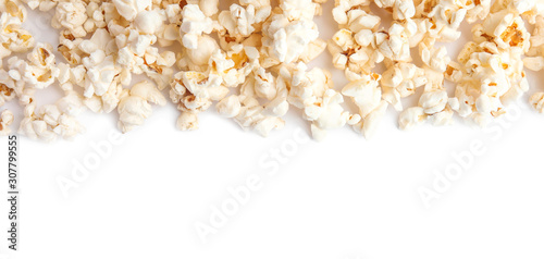 Tasty fresh pop corn isolated on white, top view
