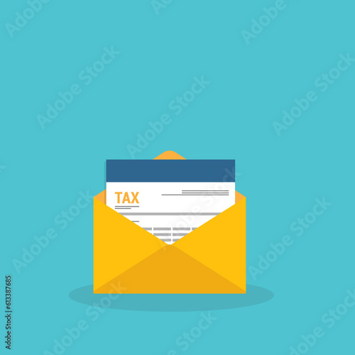 Tax document in an open envelope. Business tax or financial operations.