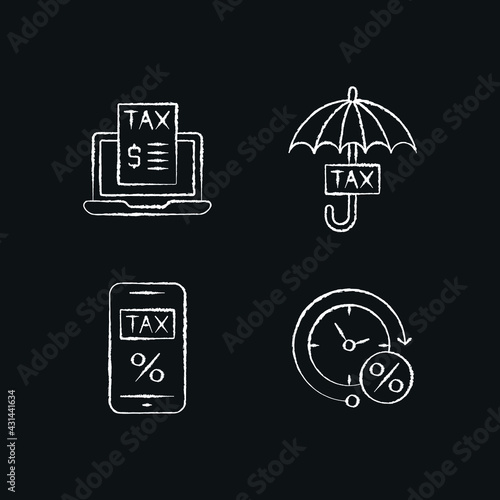 Tax Service chalk icon. Taxation. Contour symbol. Vector isolated outline drawing.