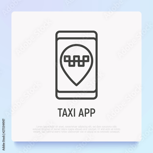 Taxi app thin line icon: yellow pointer on smartphone screen. Modern vector illustration.