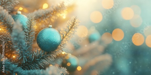 Teal Christmas Ornament On A Snowy Tree Branch