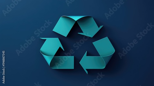 Teal recycle symbol on dark blue background.