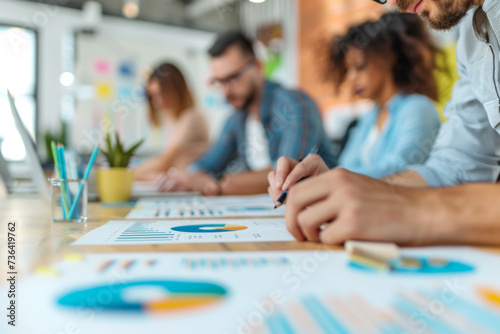 Team Collaboration at Work - Out of Focus Background. Colleagues engaging in a collaborative work session.
